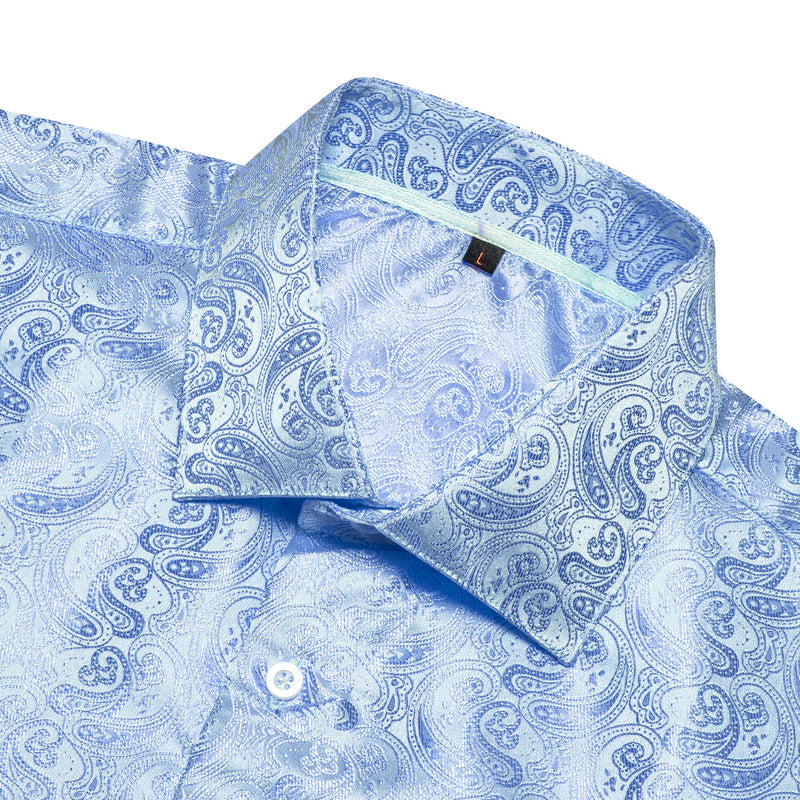 Baby Blue Paisley Pattern Silk Dress Shirt