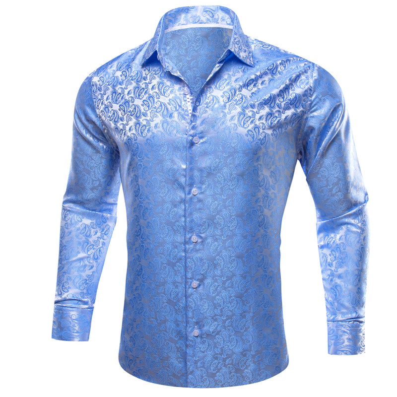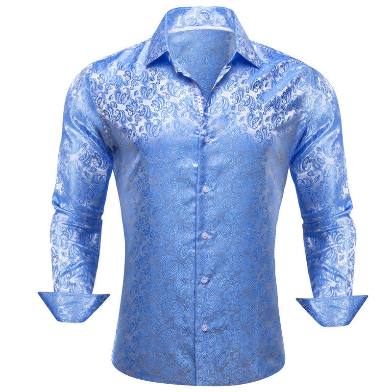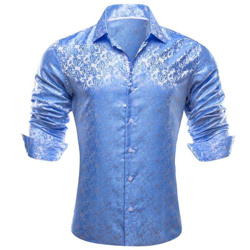 Baby Blue Paisley Style Silk Dress Shirt