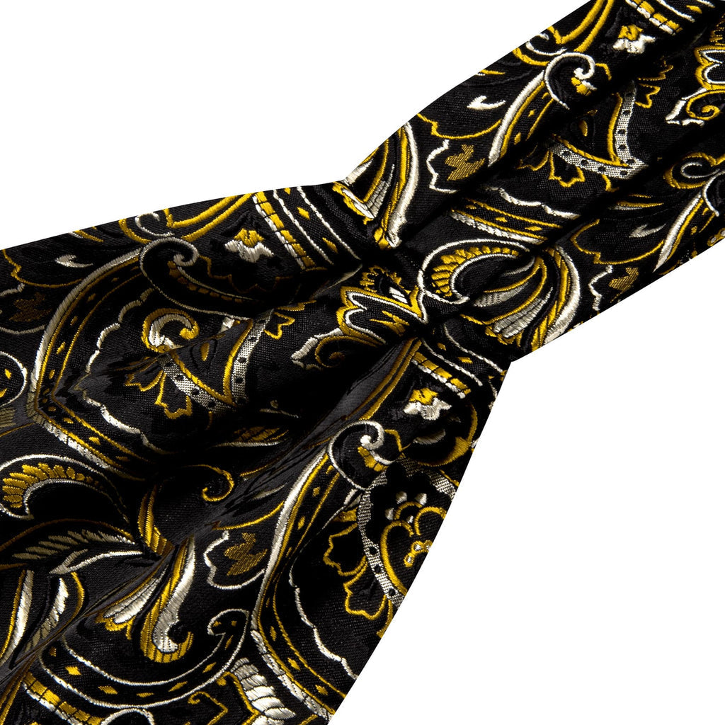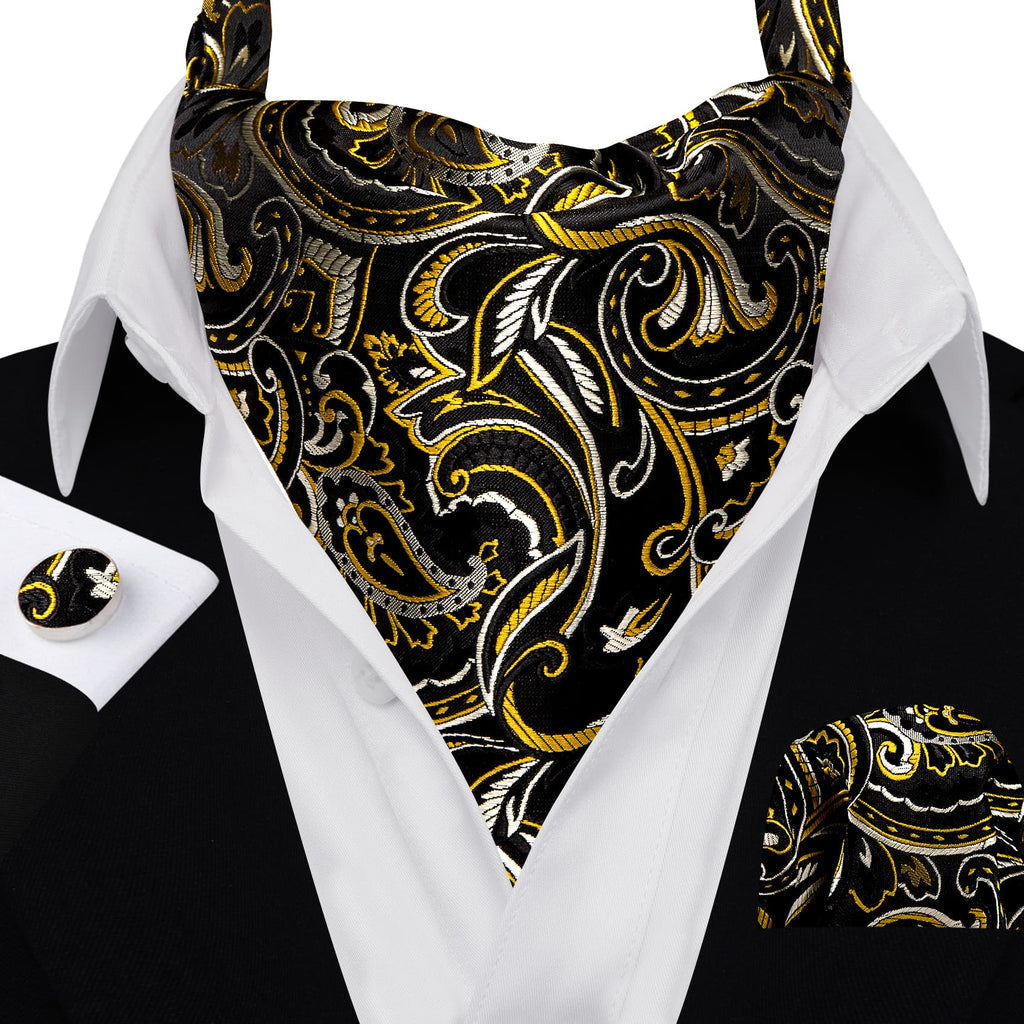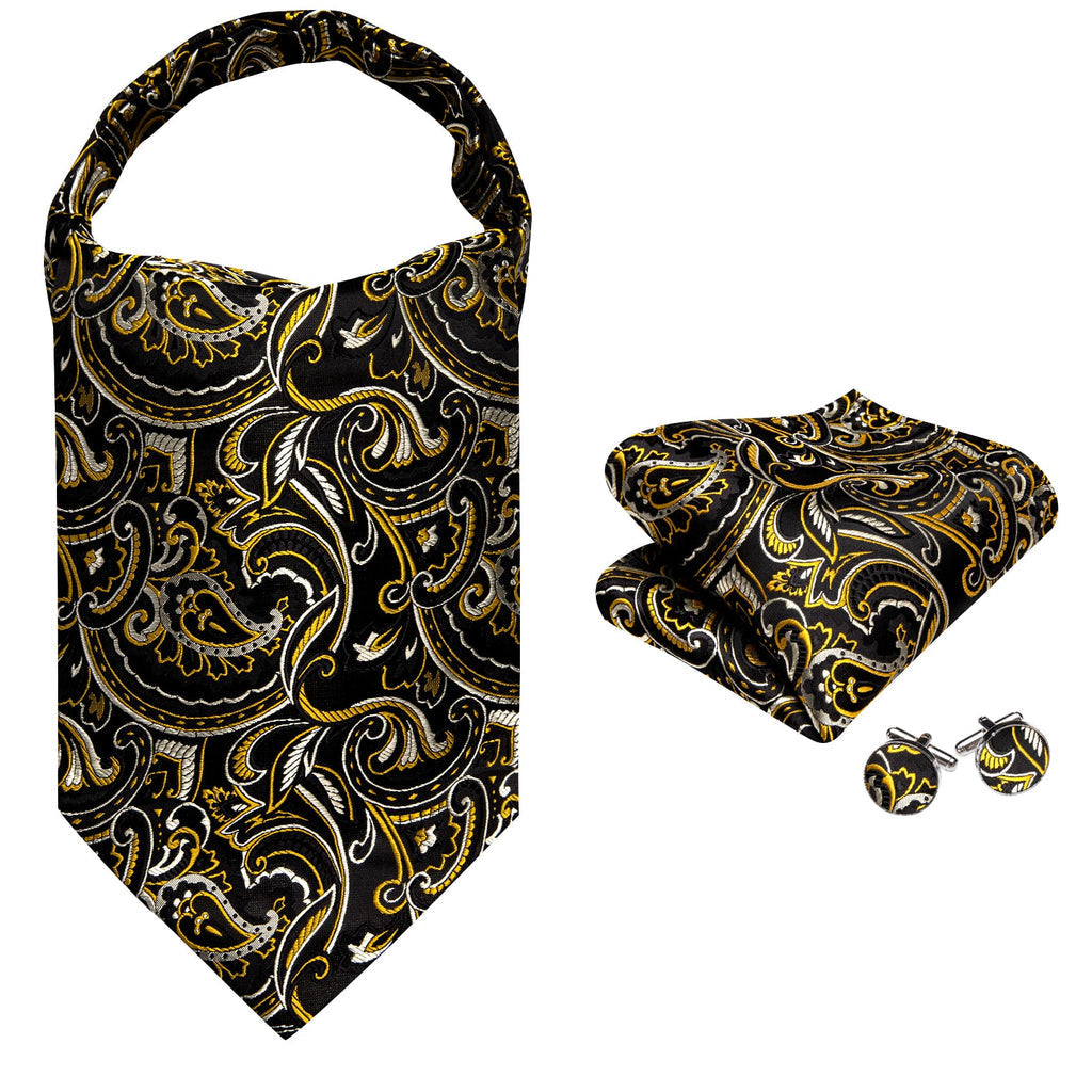 Black Beige Yellow Floral Ascot, Pocket Square and Cufflinks