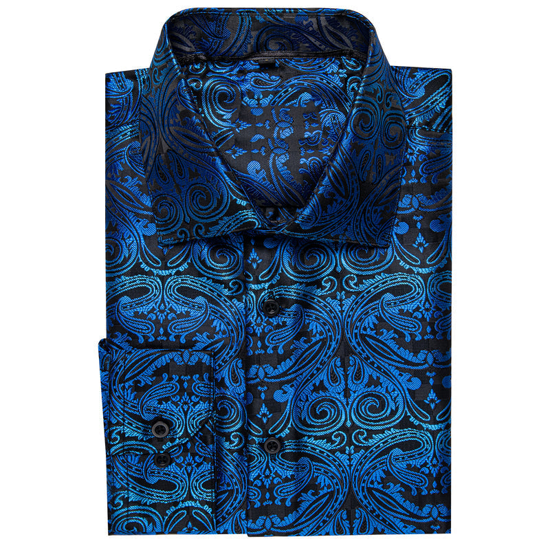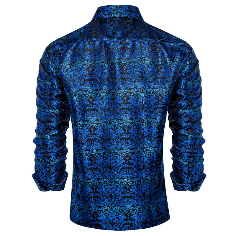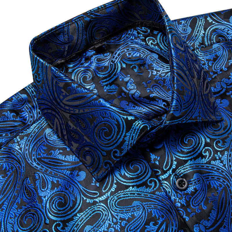 Black Gradient Blue Paisley Silk Dress Shirt