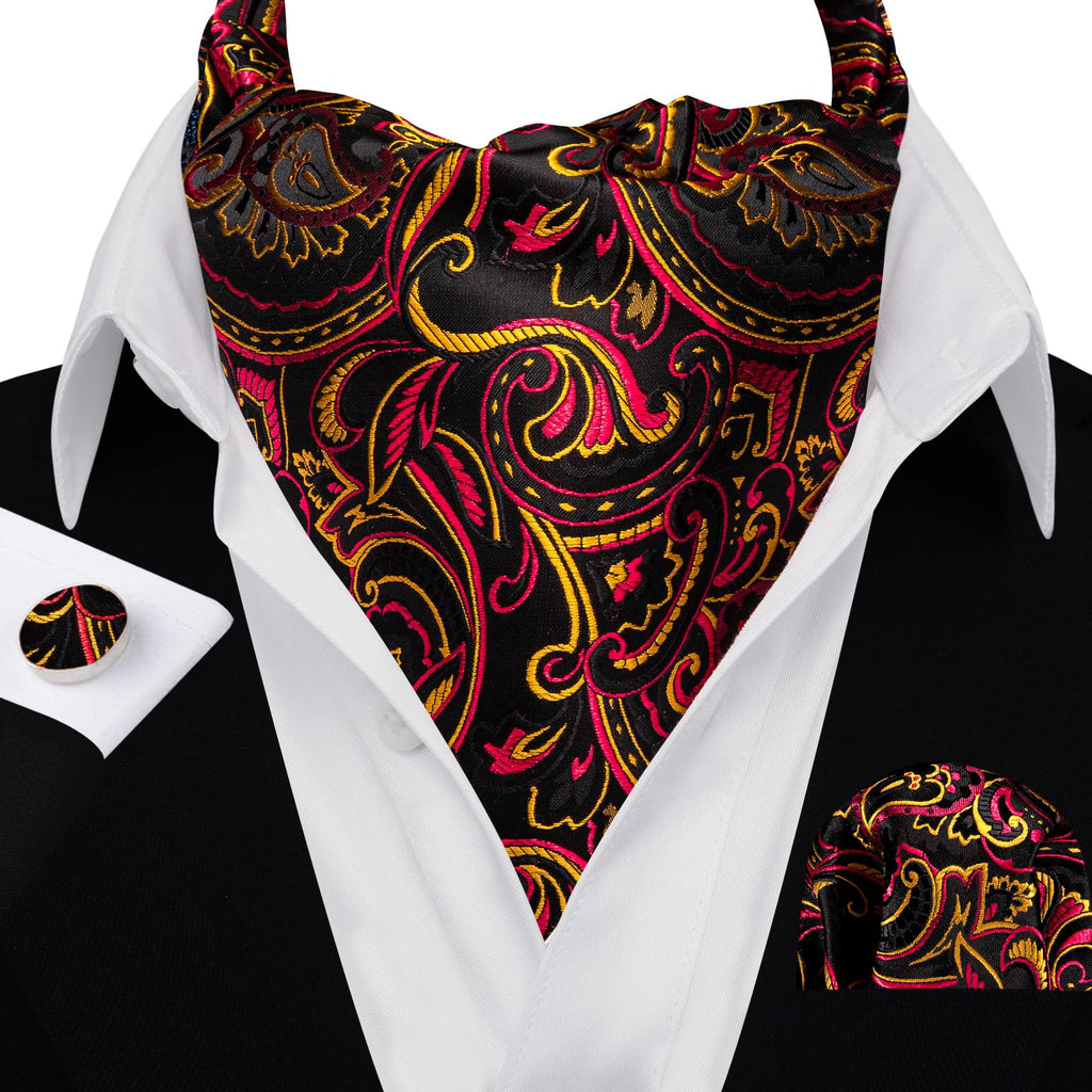 Black Pink Yellow Ascot, Pocket Square and Cufflinks