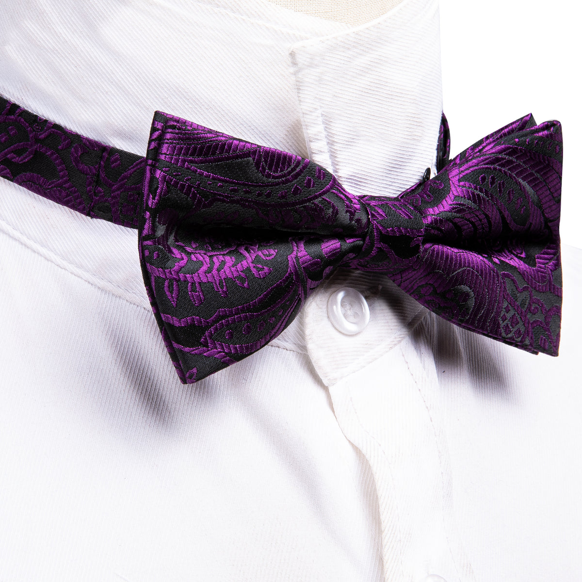 Handcrafted from luxurious silk, this bow tie set includes a bow tie, a matching pocket square, and cufflinks, offering timeless sophistication and a refined look for formal events and special occasions.