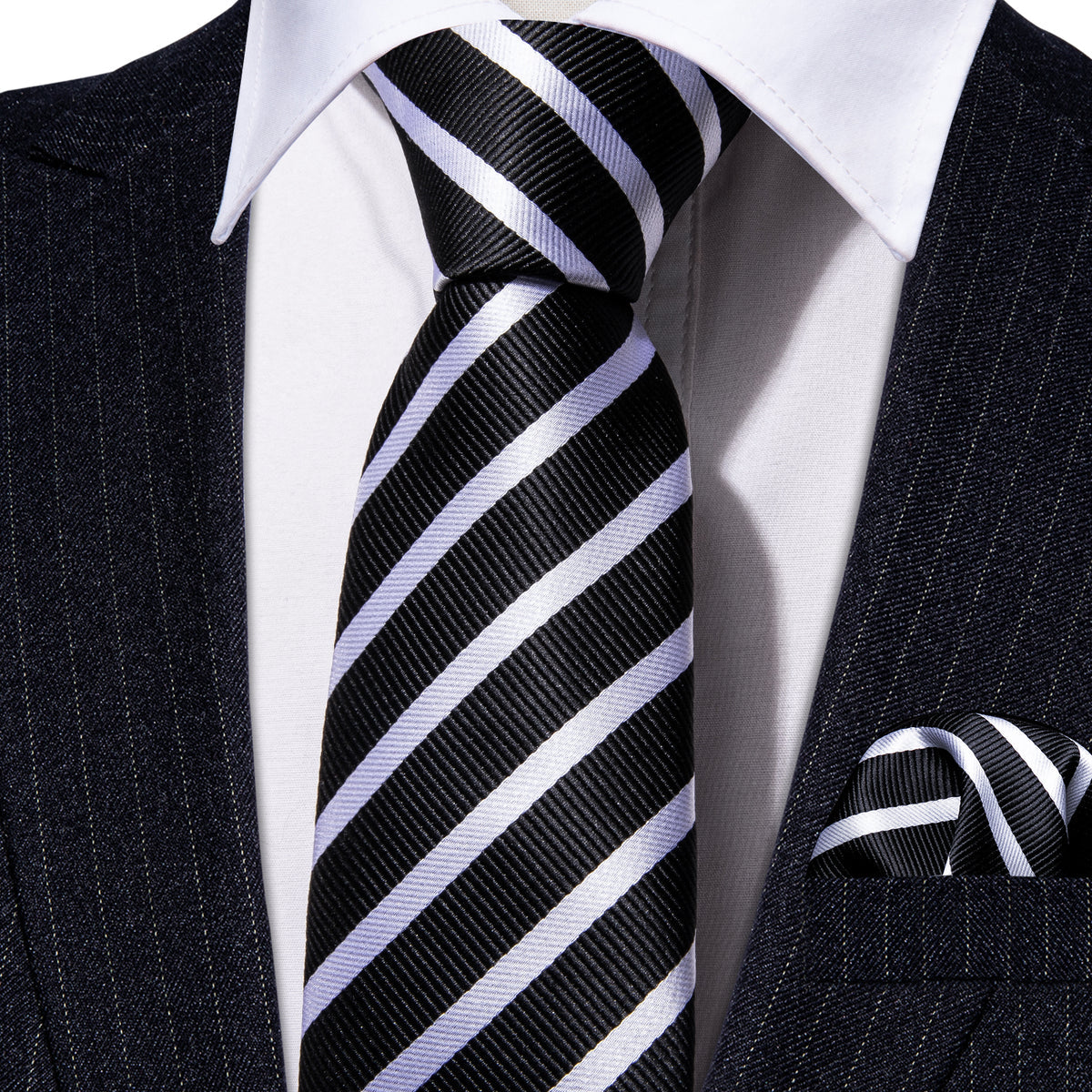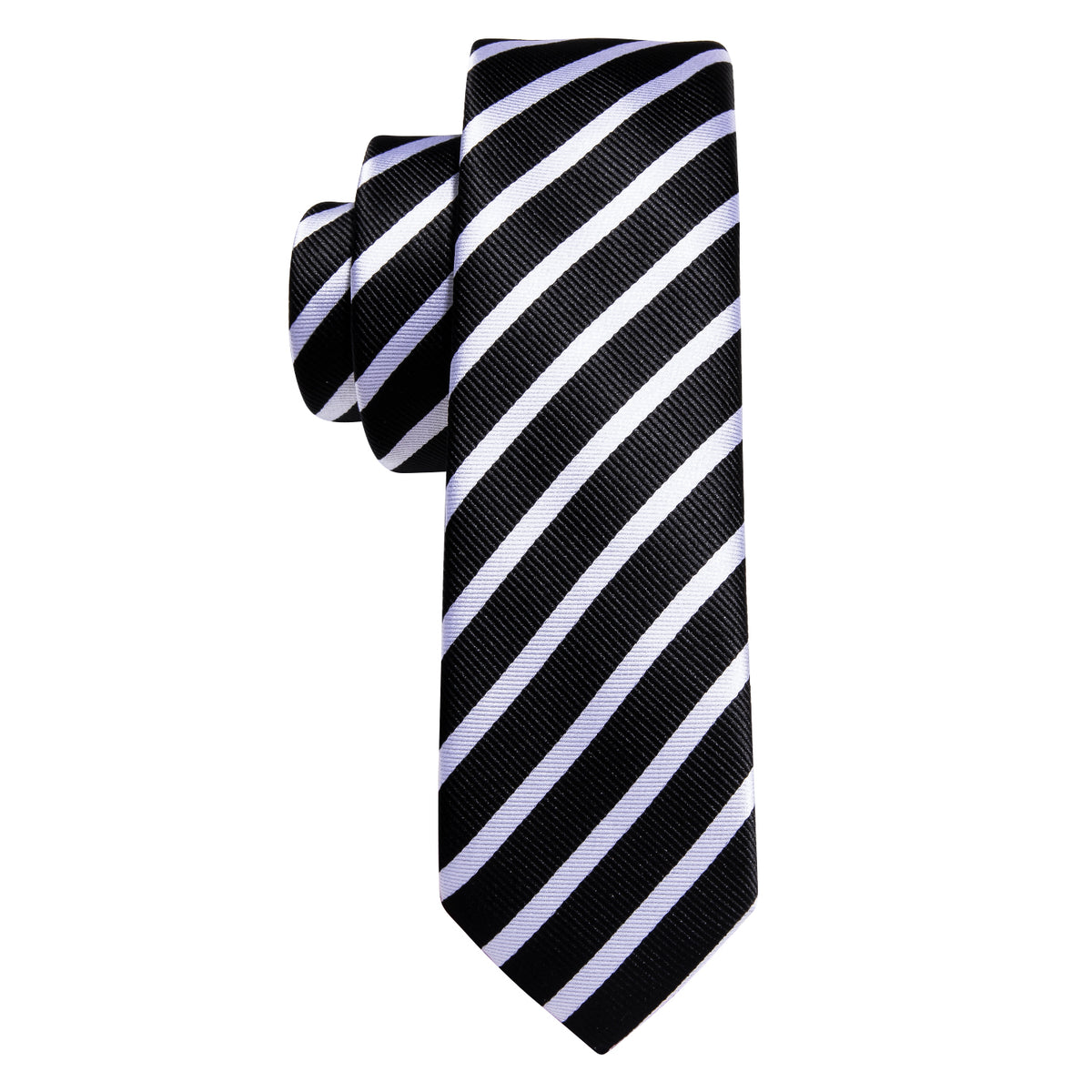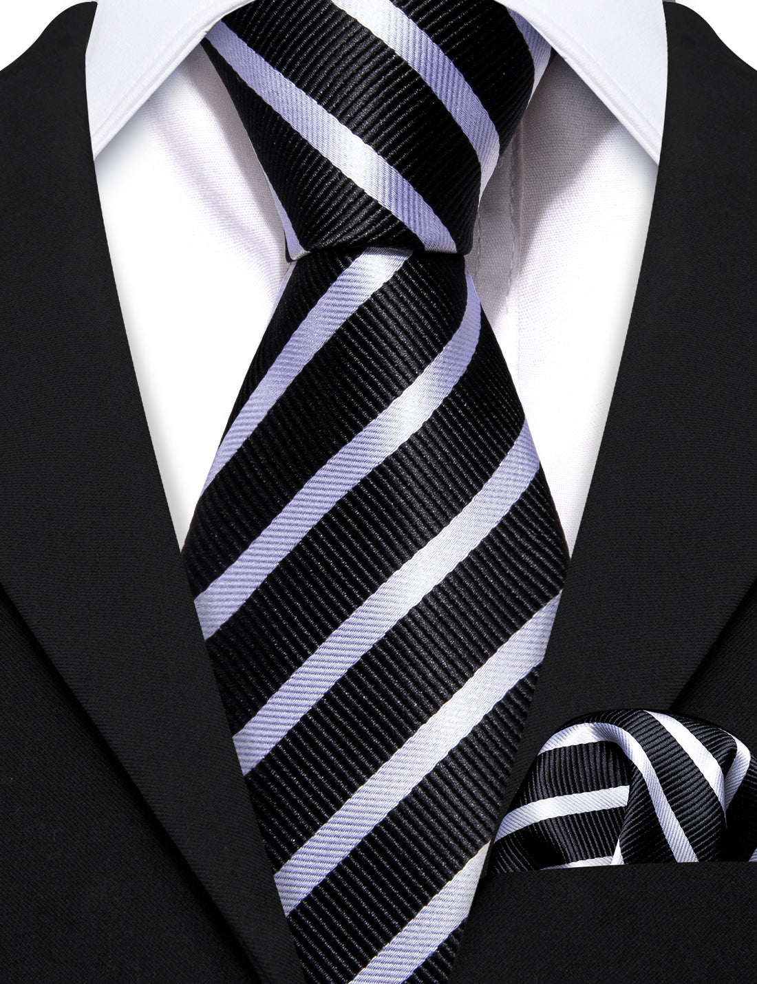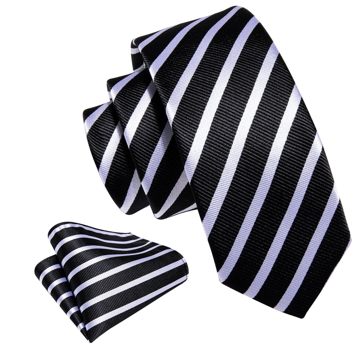 Black White Striped Children Tie, Pocket Square and Cufflinks Set
