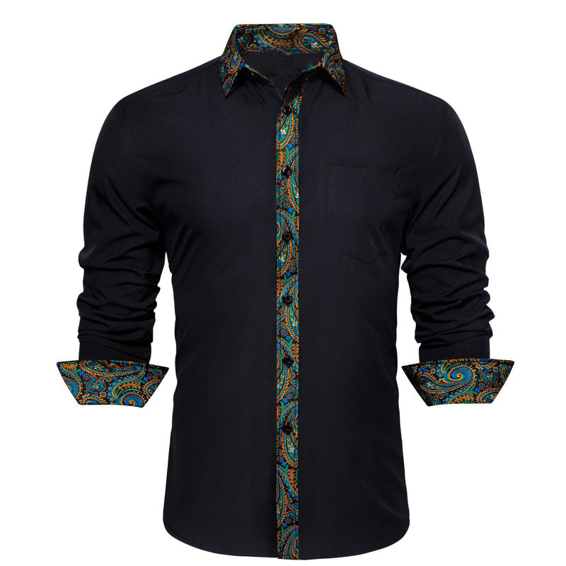 Black With Colorful Green Blue Gold Paisley Edge Dress Shirt