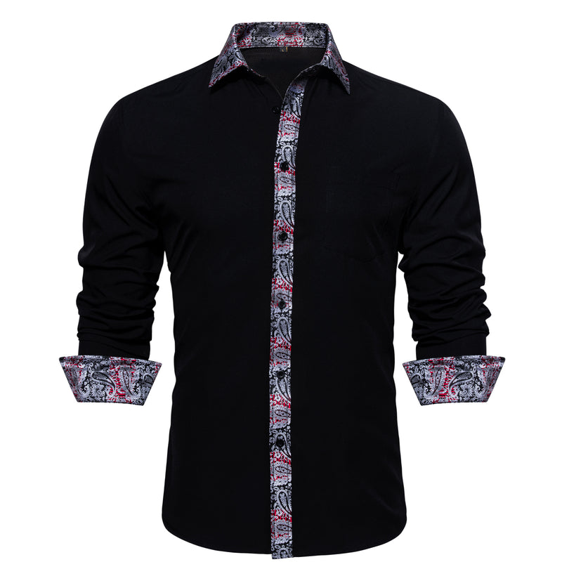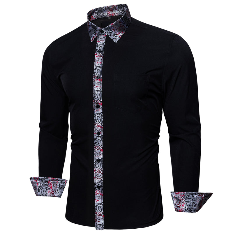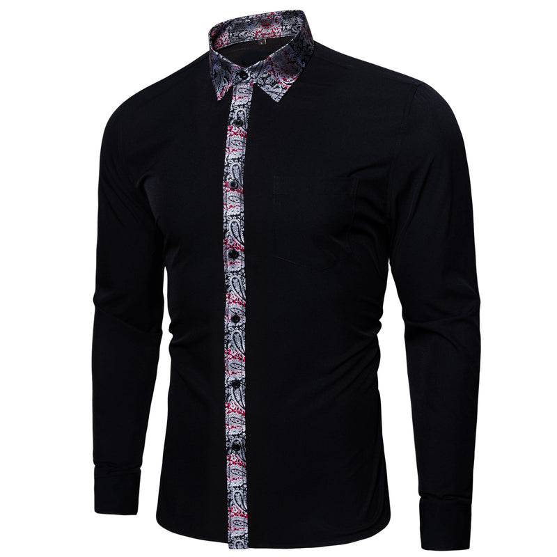Splicing Style Black With Silver Paisley Edge Dress Shirt
