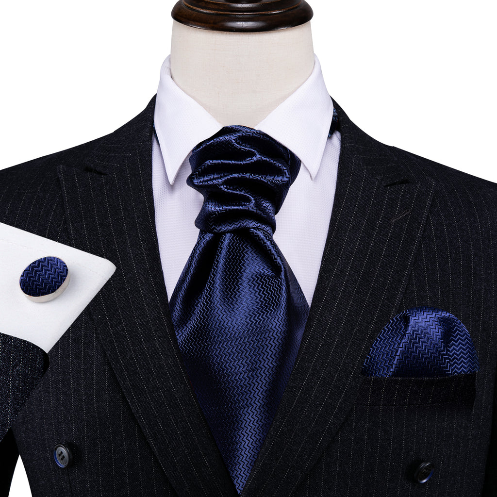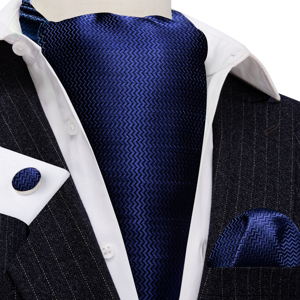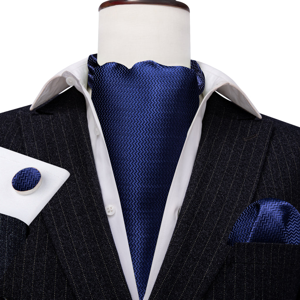 Blue Solid Silk Ascot, Pocket Square and Cufflinks