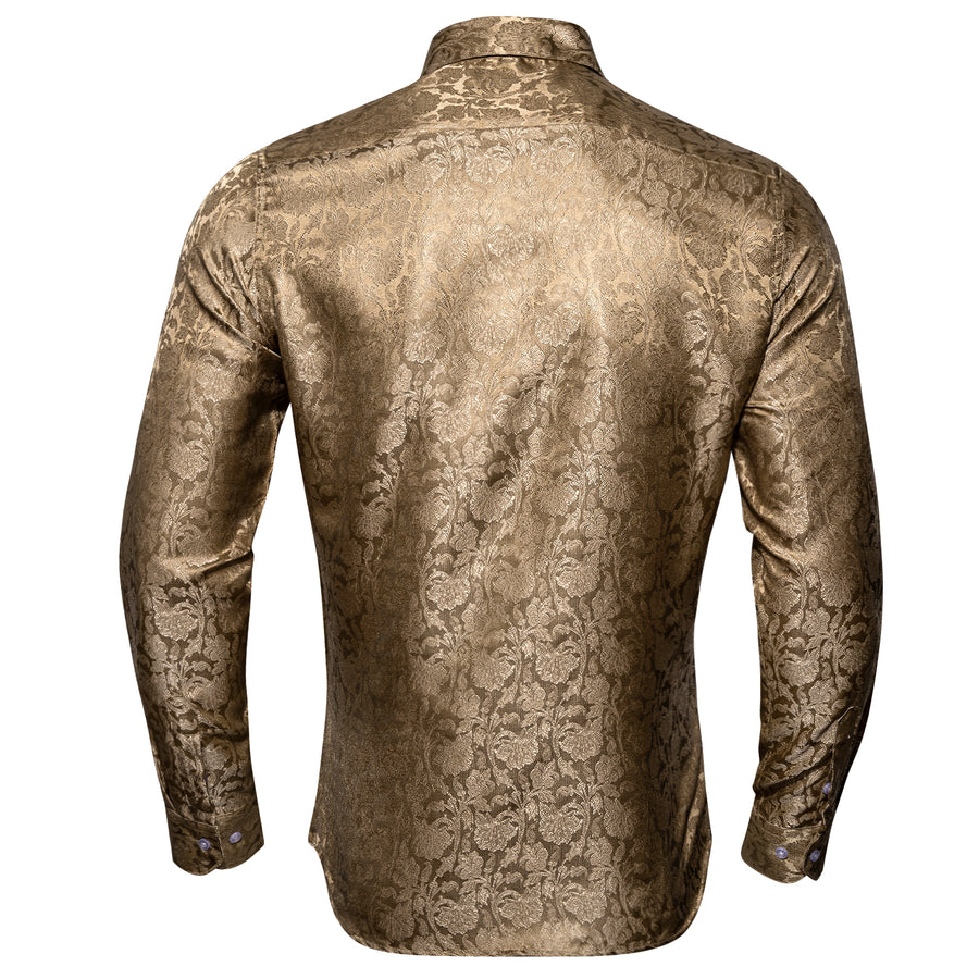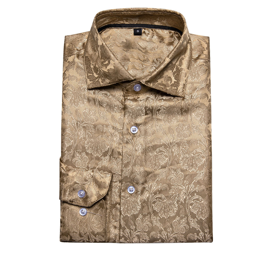 Champagne Brown Floral Silk Dress Shirt