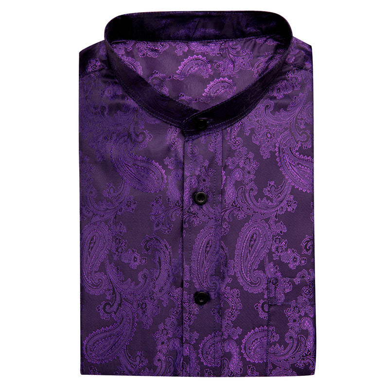 Dark Purple Paisley Silk Men's Dress Shirt