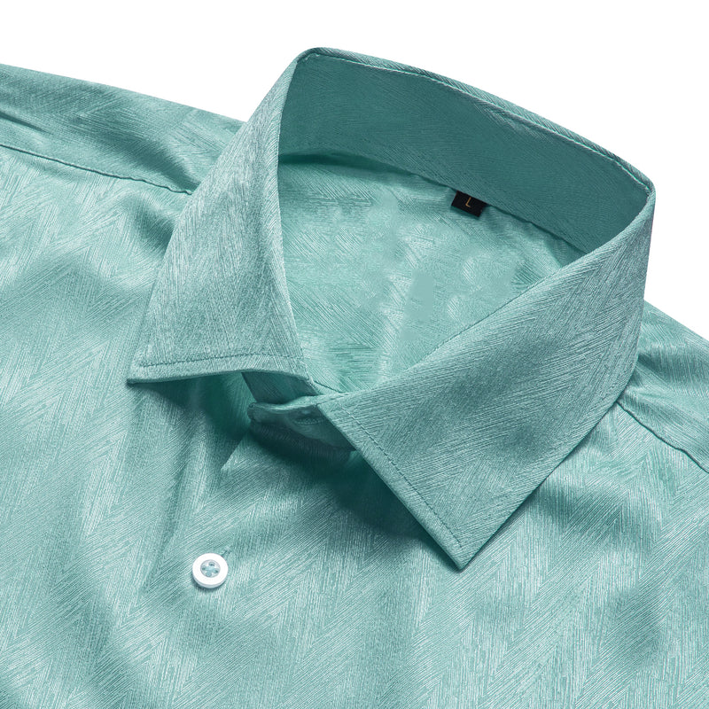 Green Blue Solid Woven Dress Shirt