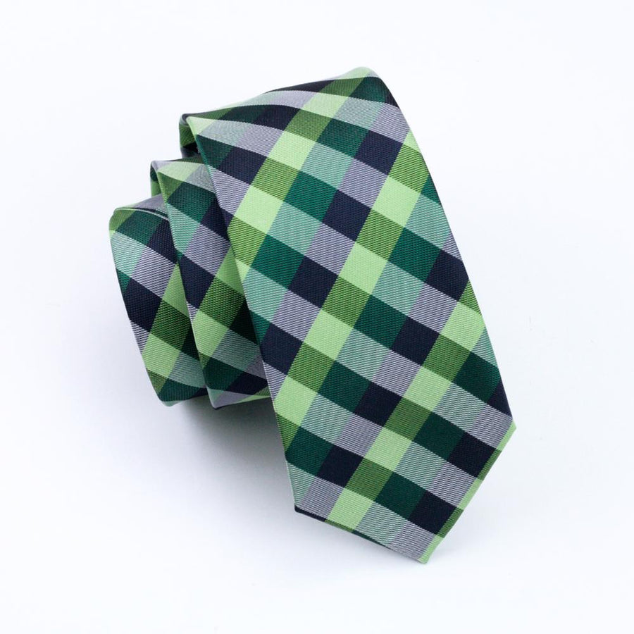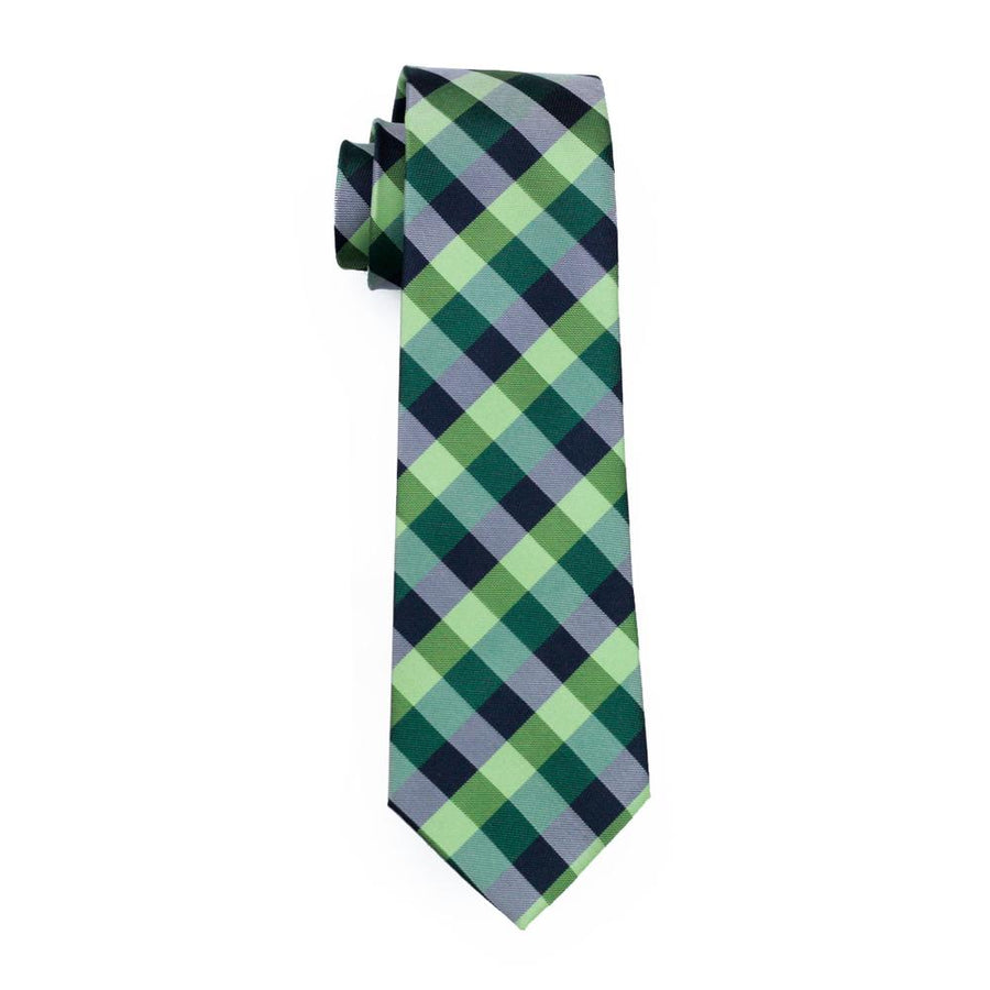 Emerald Green Plaid Silk Tie Set with Pocket Square and Cufflinks