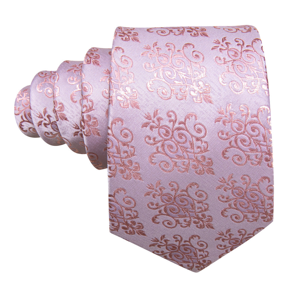 Lavender Pink Floral Tie, Pocket Square and Cufflinks Set
