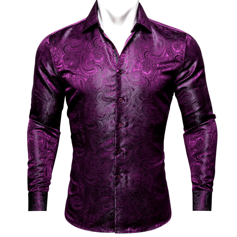Luxury Purple Paisley Pattern Silk Dress Shirt
