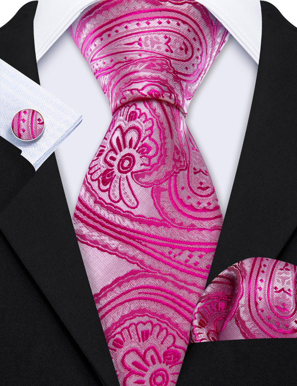Orchid Pink Floral Tie, Pocket Square and Cufflinks Set