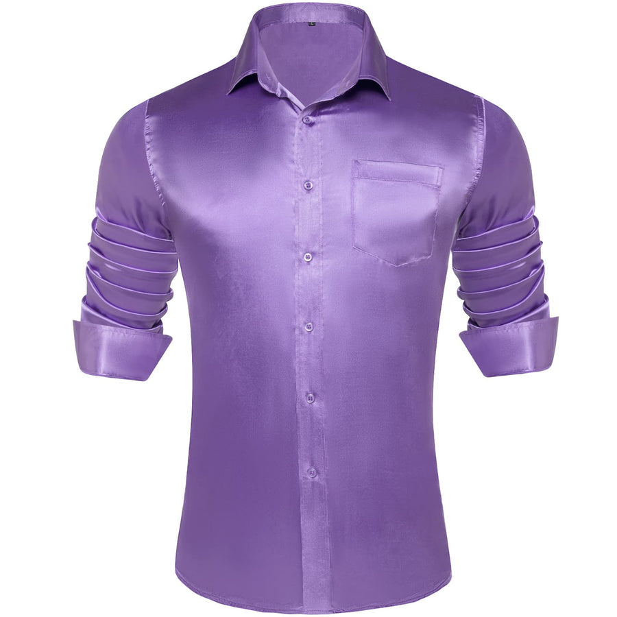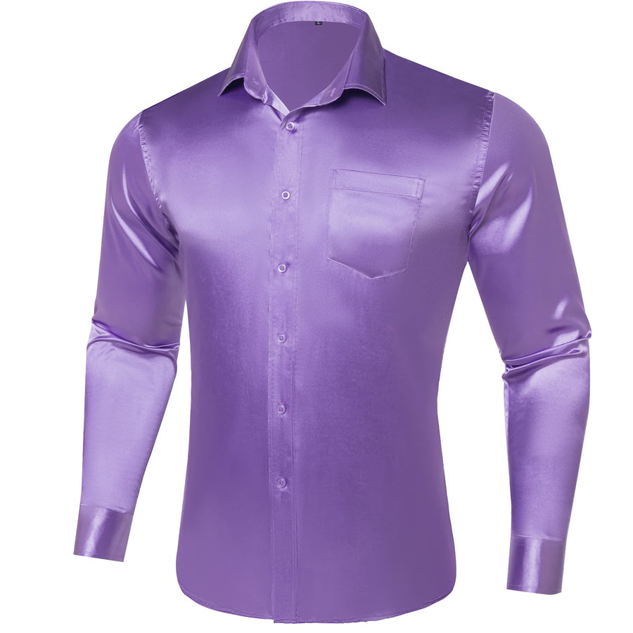 Orchid Purple Solid Satin Men's Silk Dress Shirt