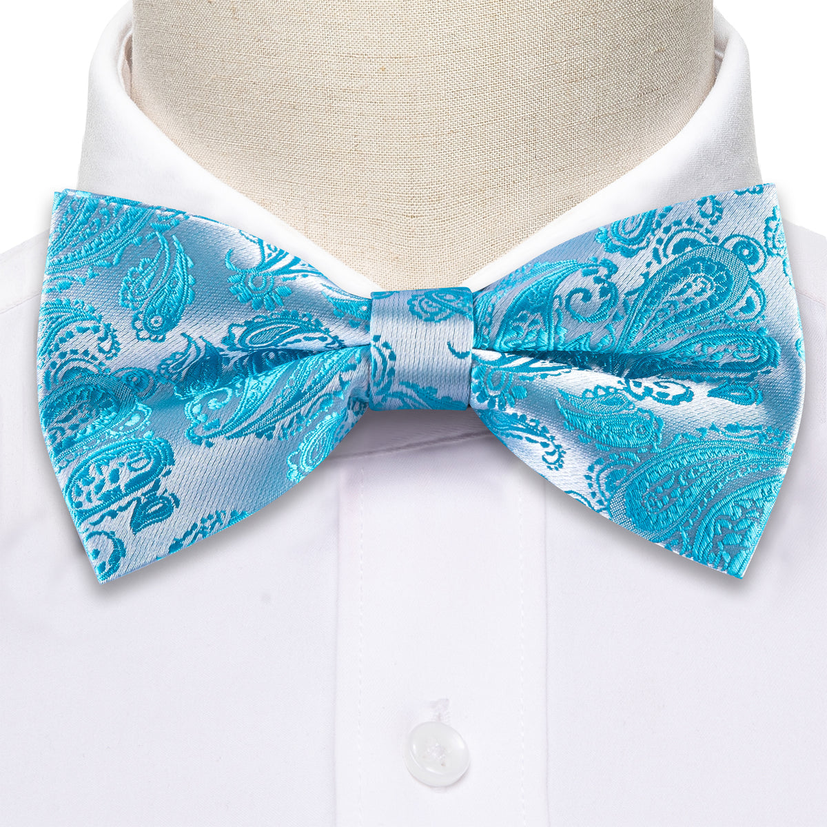 Pale Blue Silver Paisley Silk Bow Tie Set