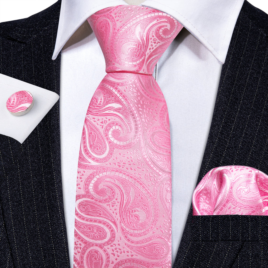 Elegant Rose Paisley Silk Tie, Pocket Square, and Cufflinks Ensemble
