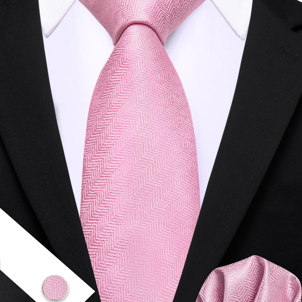 Vibrant Coral Geometric Silk Tie, Pocket Square, and Cufflinks Ensemble