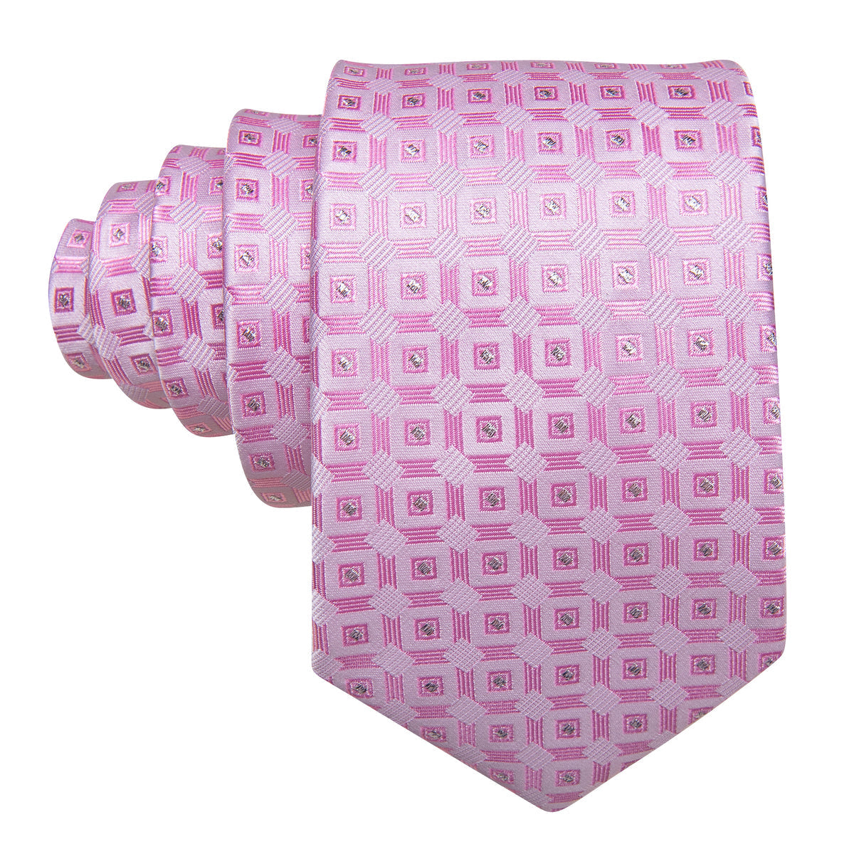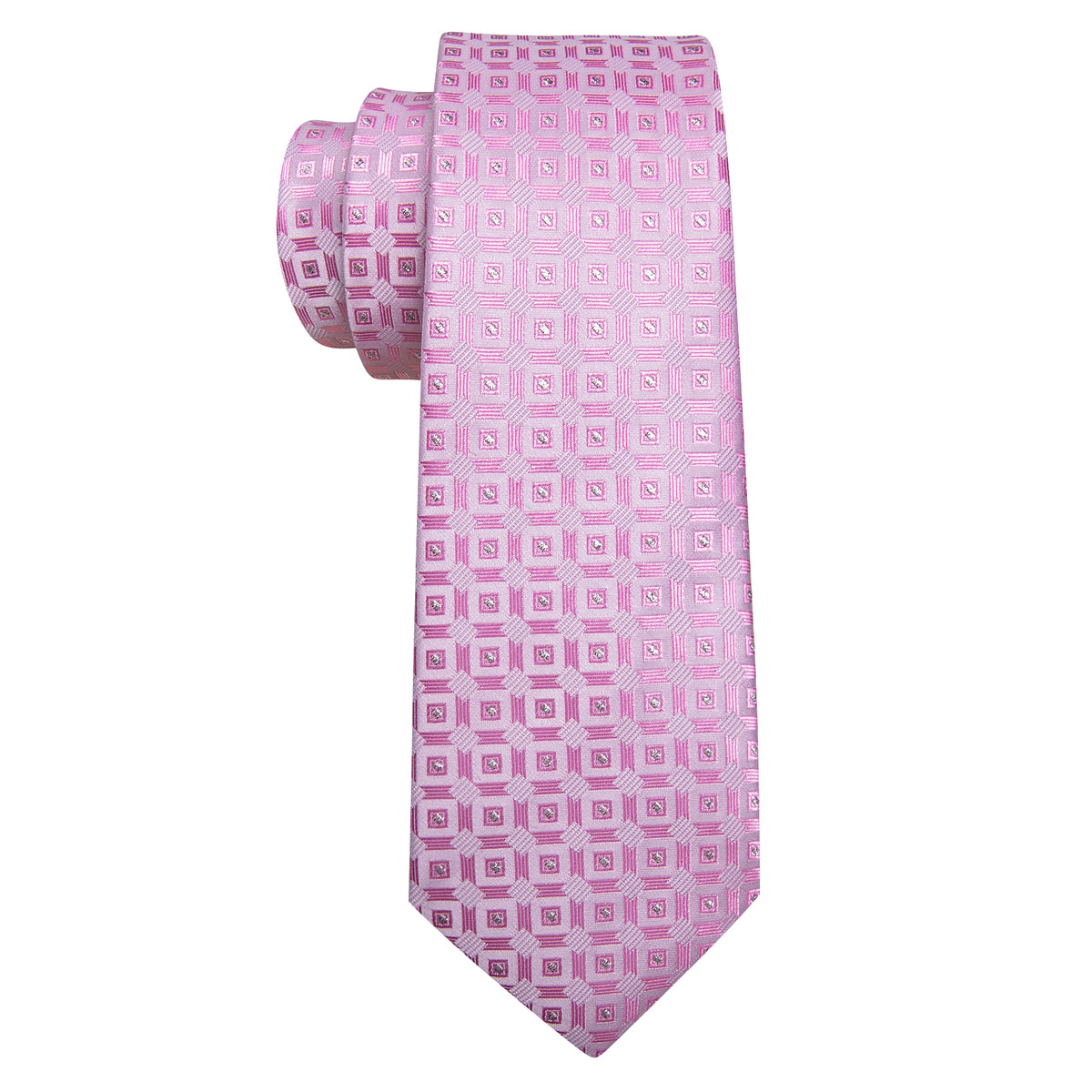 Blush Pink Plaid Silk Tie, Pocket Square, and Cufflinks Ensemble
