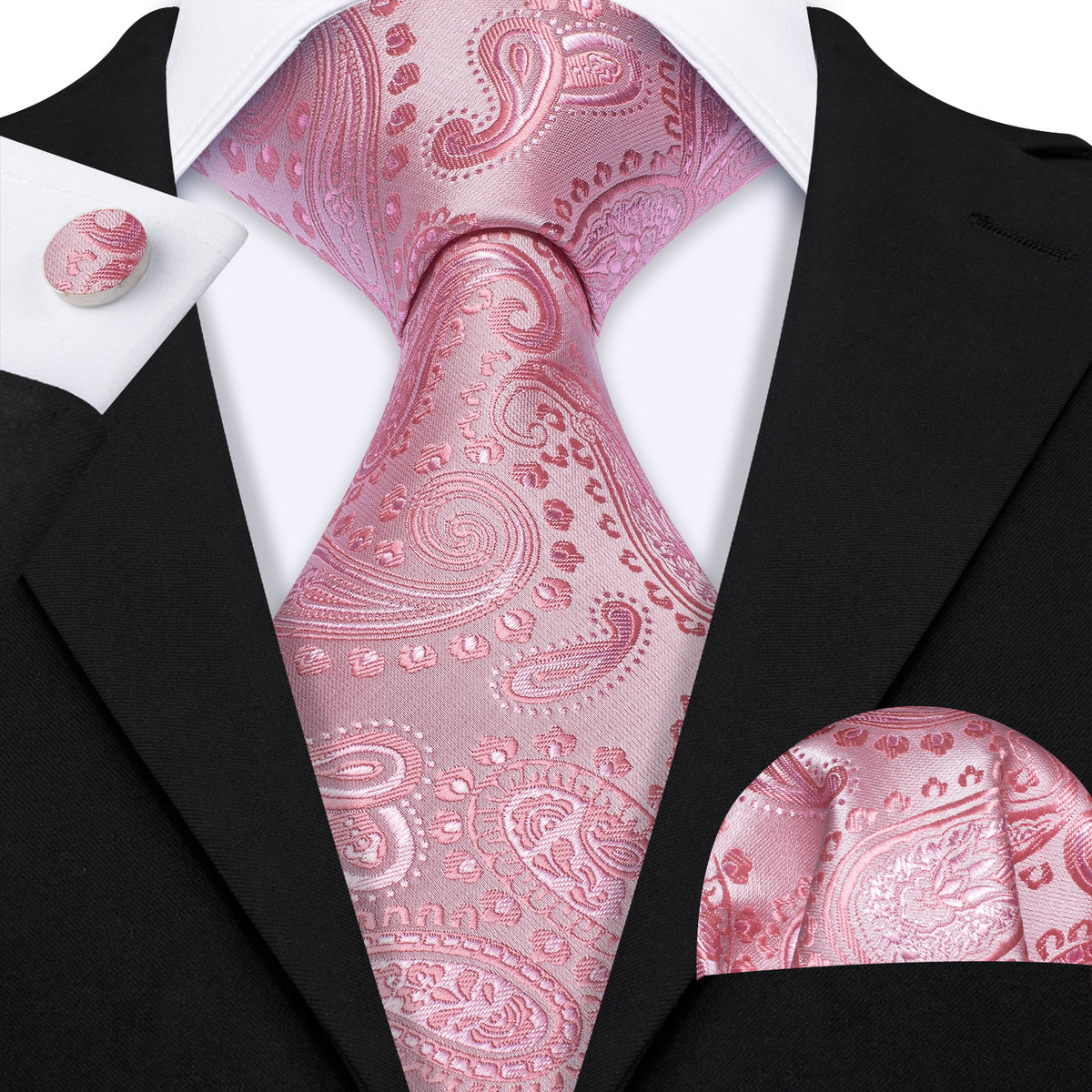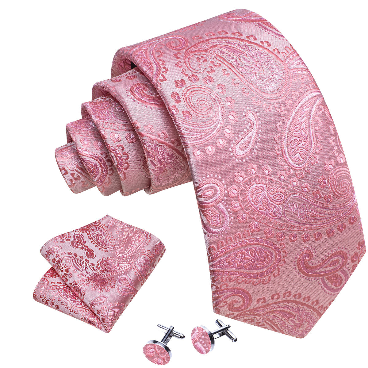 Pink Paisley Wedding Silk Tie, Pocket Square and Cufflinks Set