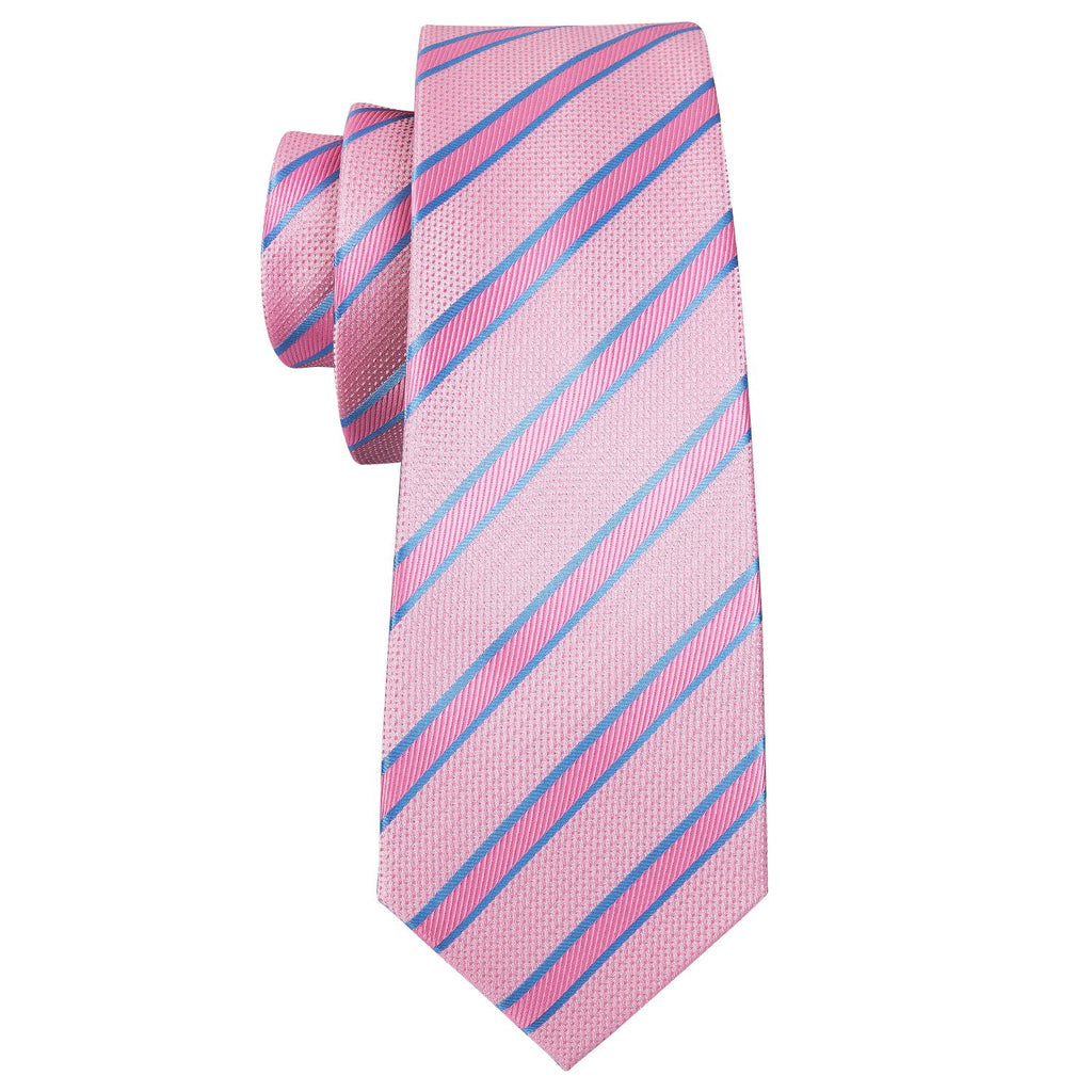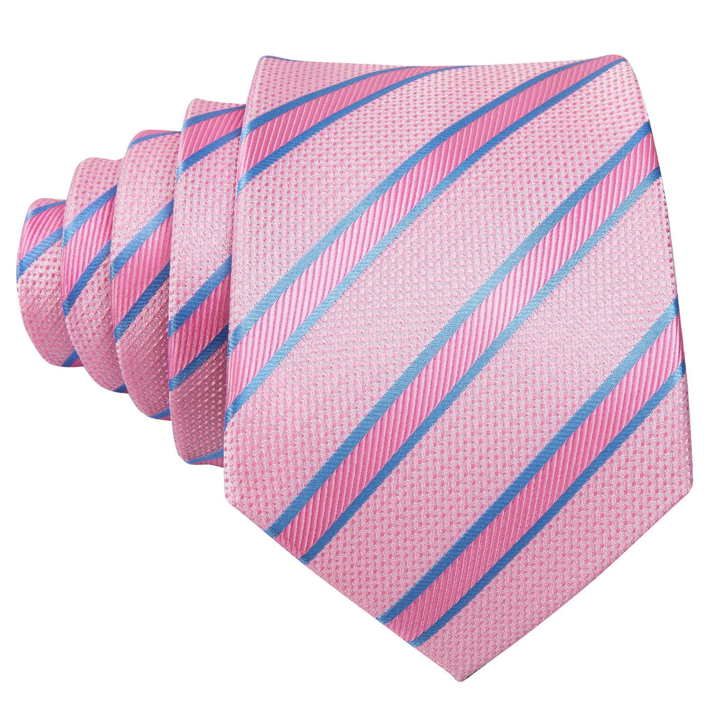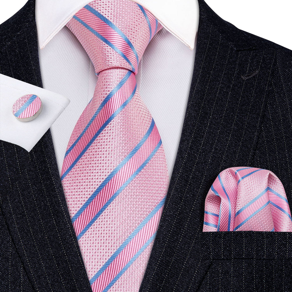 Charming Pink and Blue Striped Silk Tie, Pocket Square, and Cufflinks Ensemble