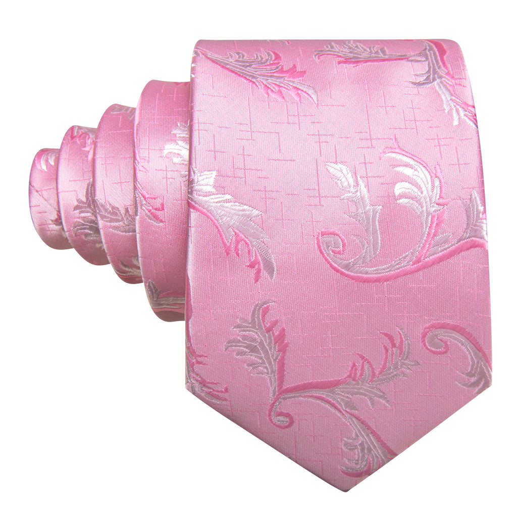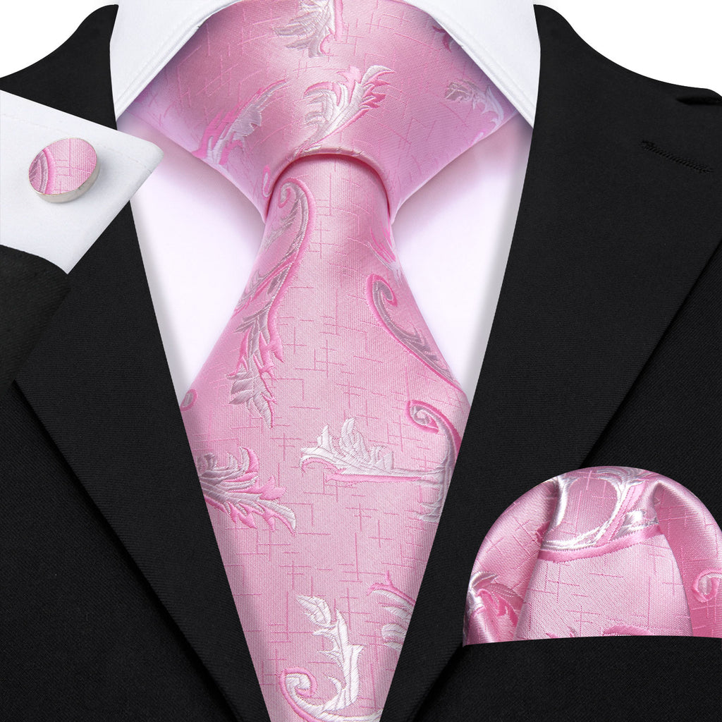 Pink White Floral Silk Tie, Pocket Square and Cufflinks Set