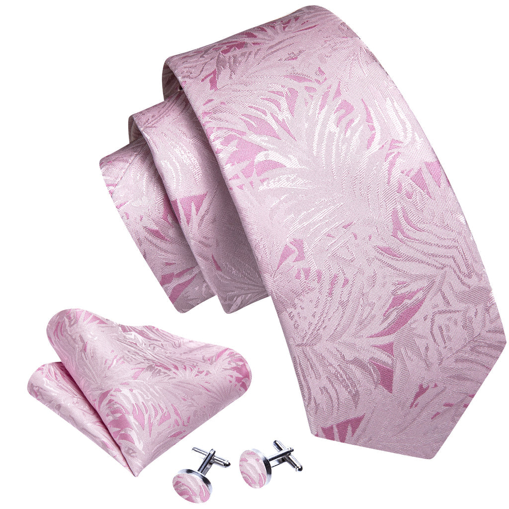 Pink White Floral Silk Tie, Pocket Square and Cufflinks Set