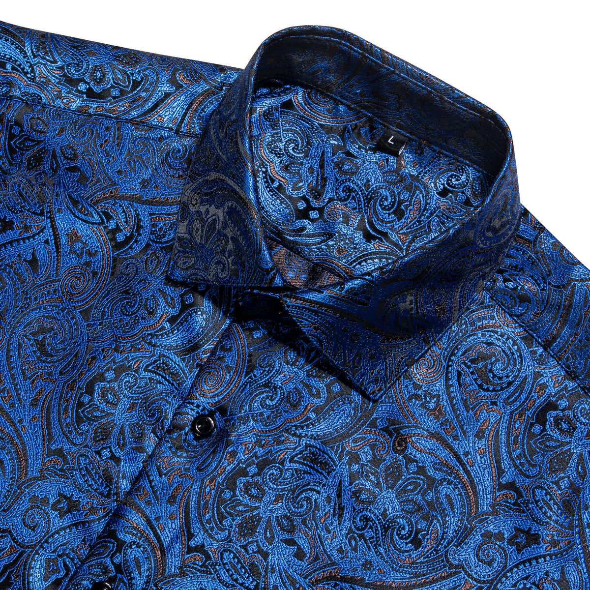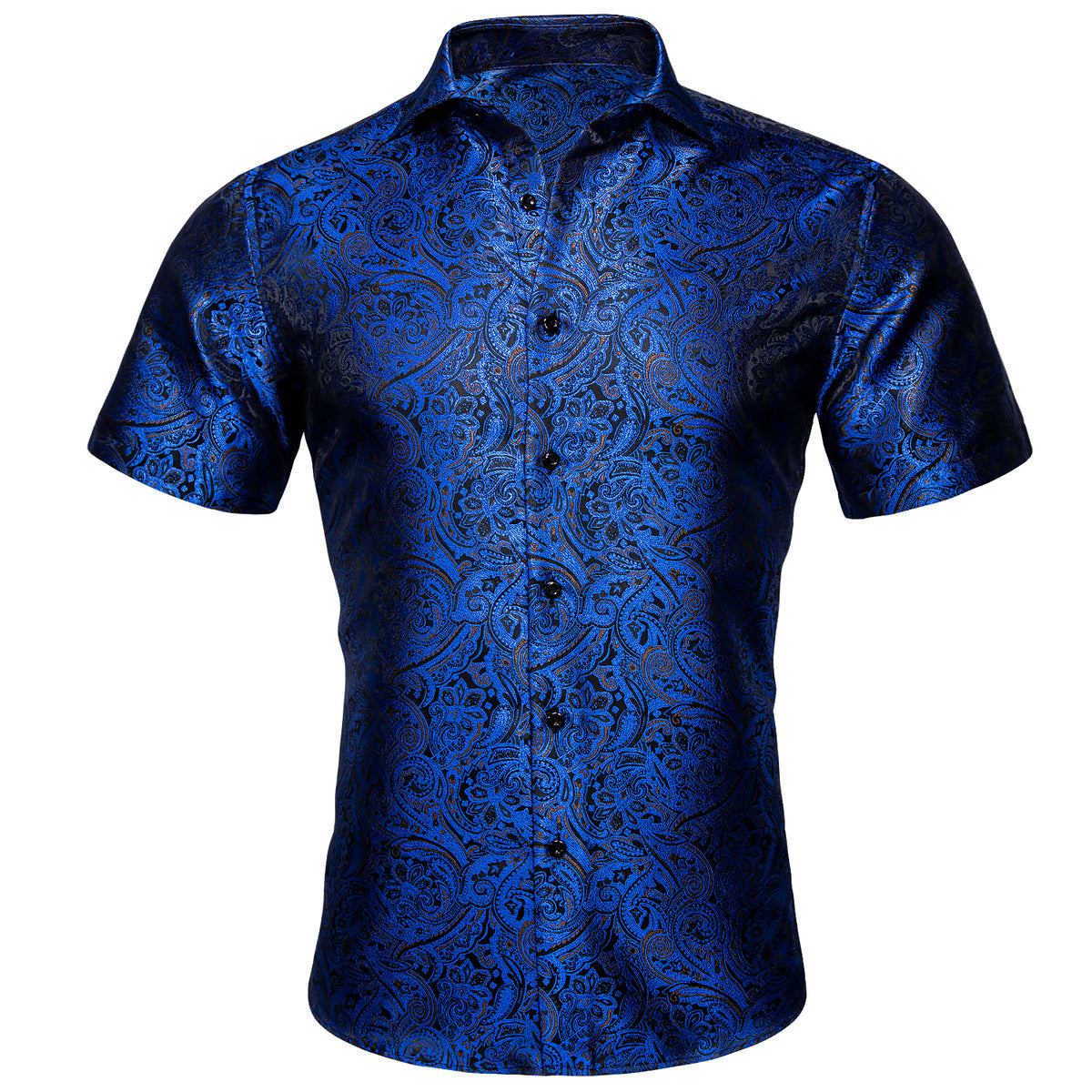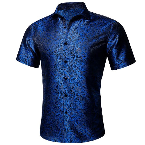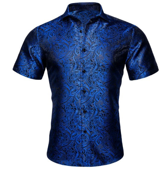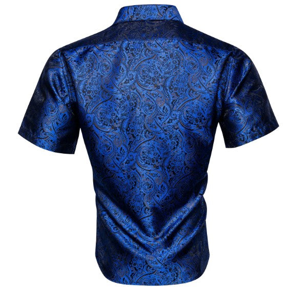 Deep Blue Paisley Silk Short Sleeve Shirt