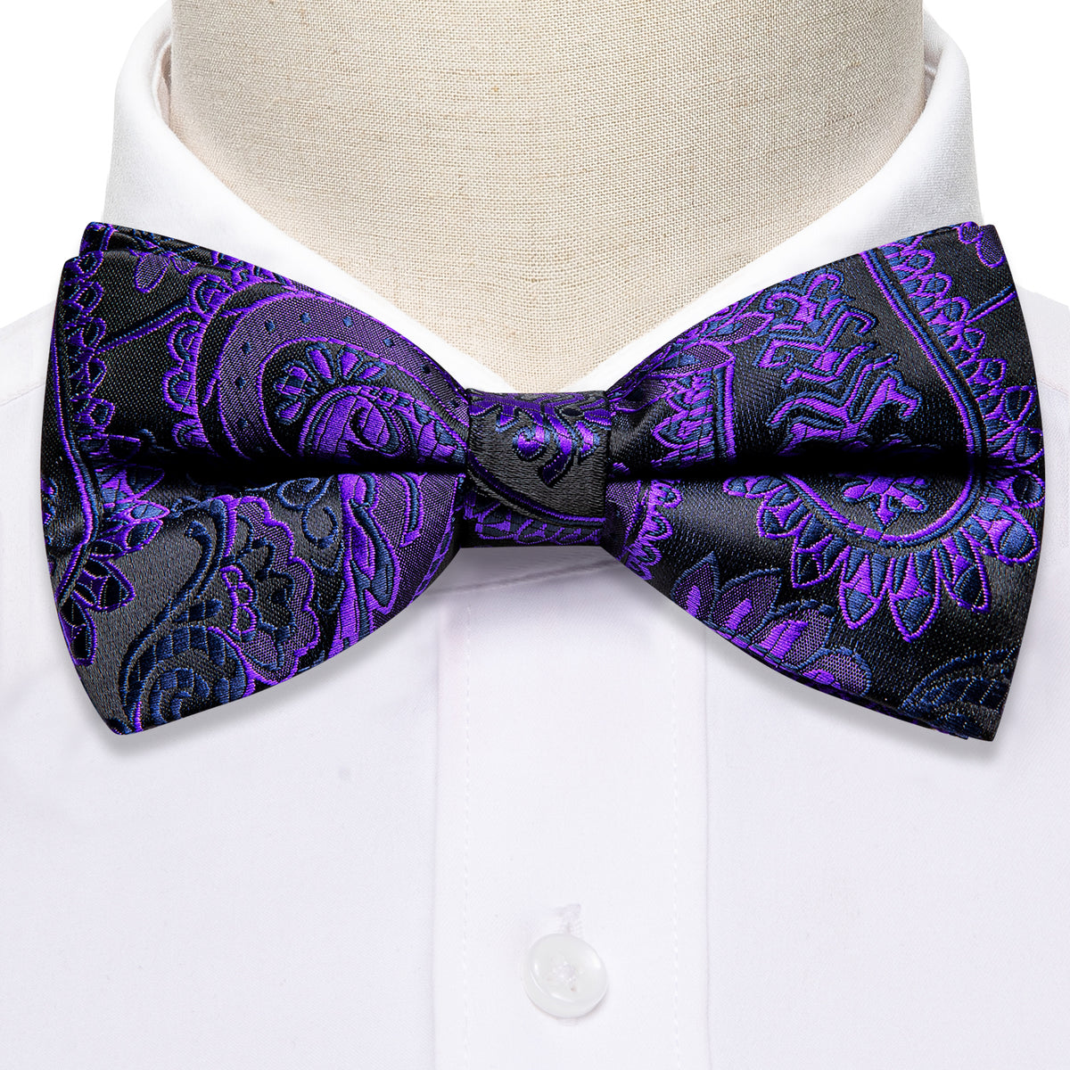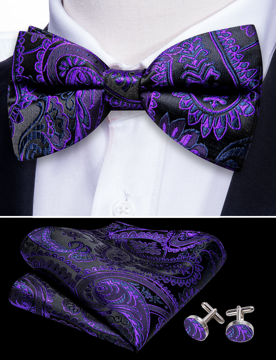 Purple Black Paisley Bow Tie Set