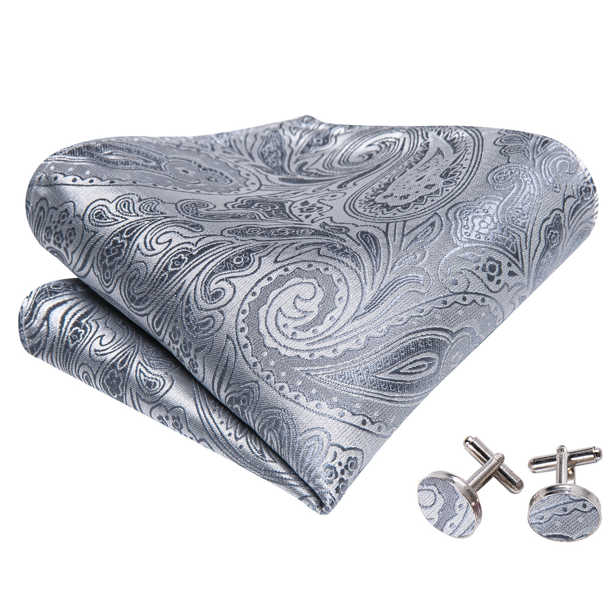 Handcrafted from luxurious silk, this bow tie set includes a bow tie, a matching pocket square, and cufflinks, offering timeless sophistication and a refined look for formal events and special occasions.