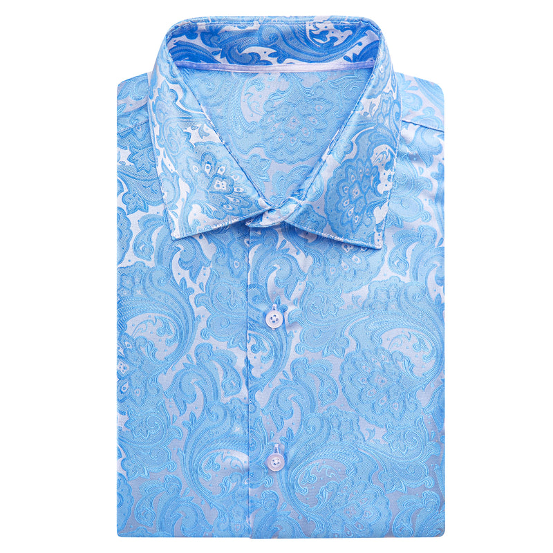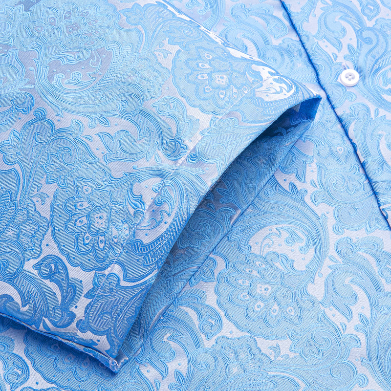 Sky Blue Paisley Floral Silk Dress Shirt