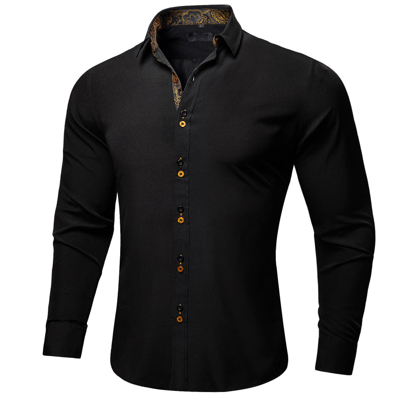 Splicing Style Black With Golden Paisley Edge Dress Shirt