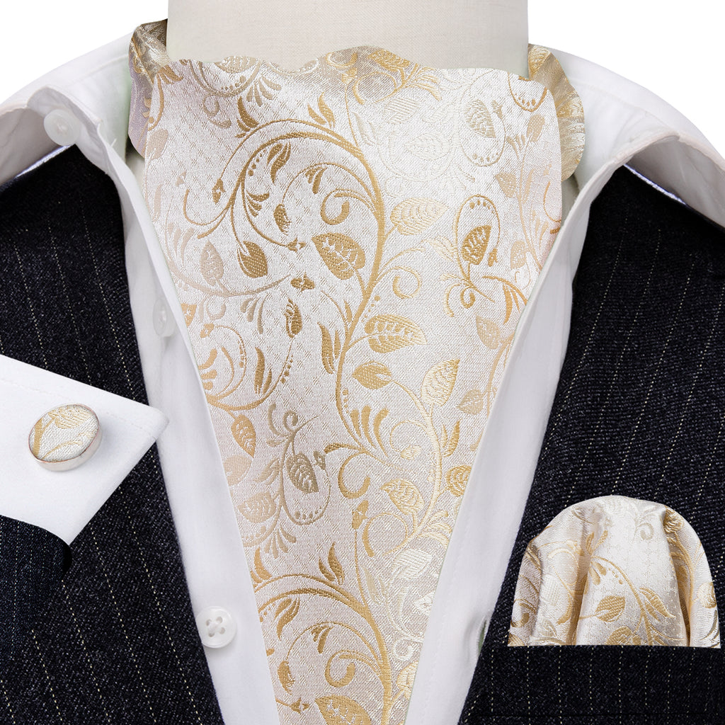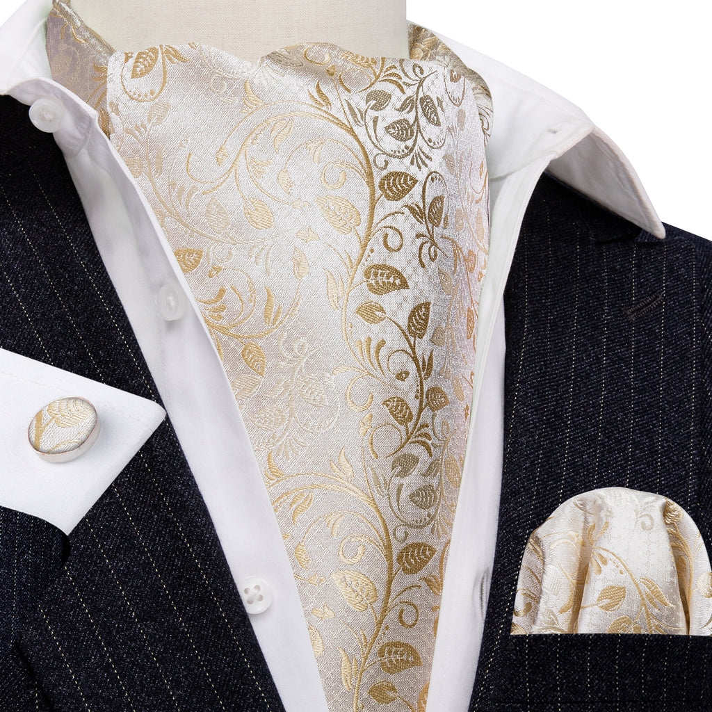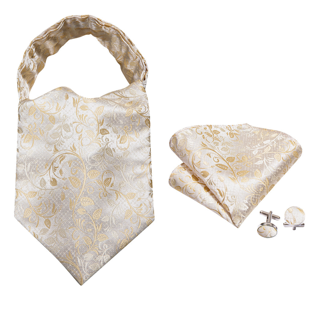 White Floral Silk Ascot, Pocket Square and Cufflinks