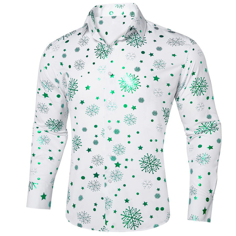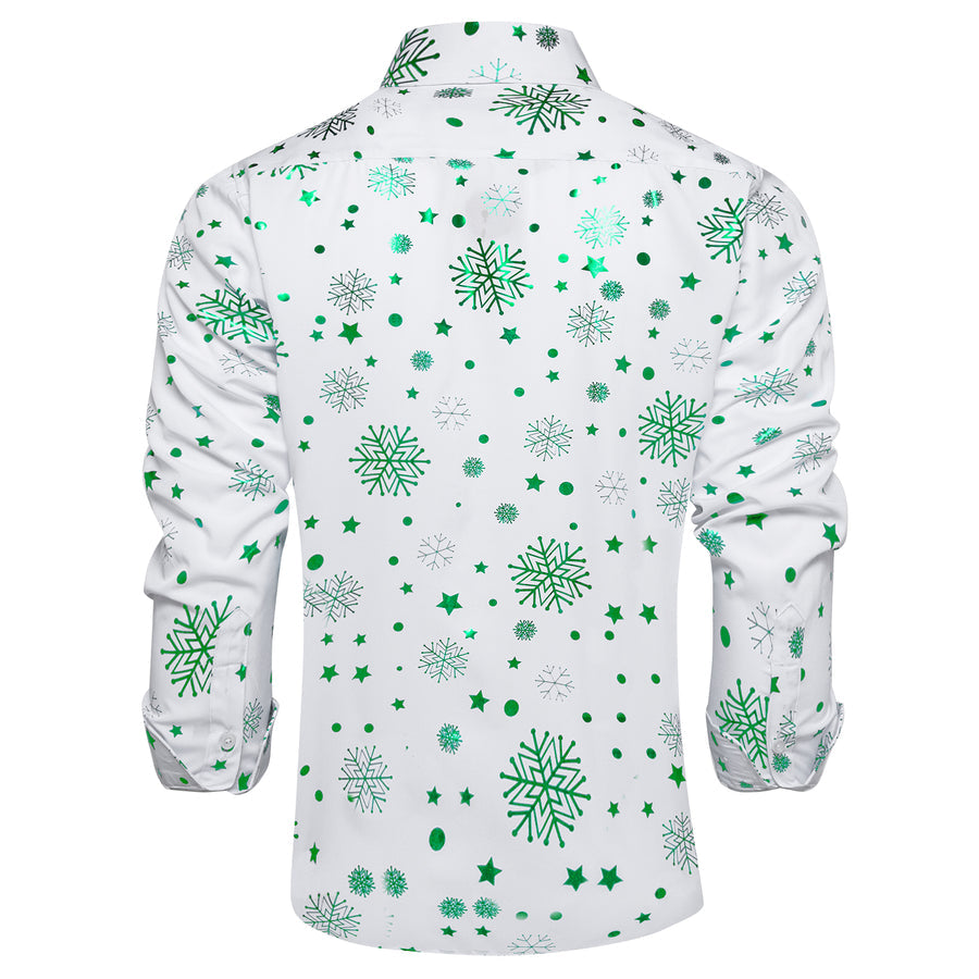 White Green Snowflakes Christmas Dress Shirt