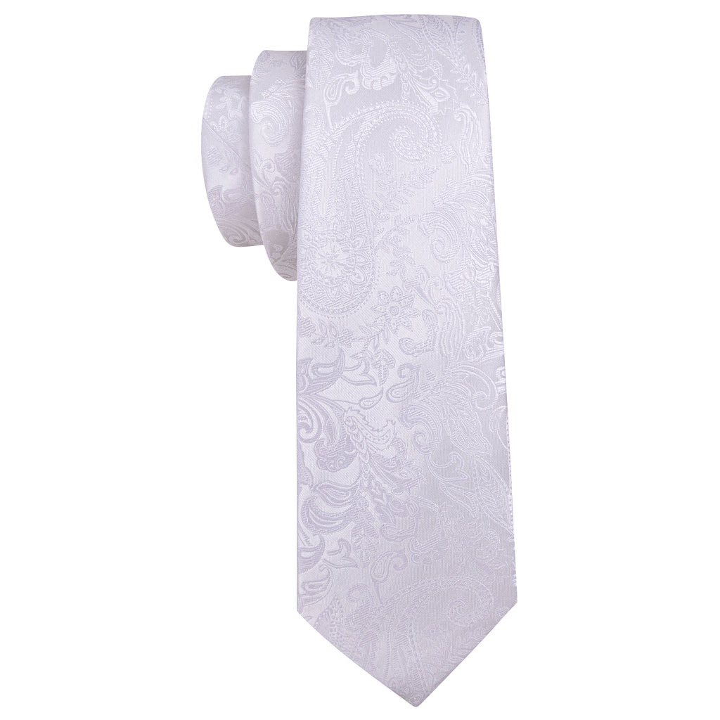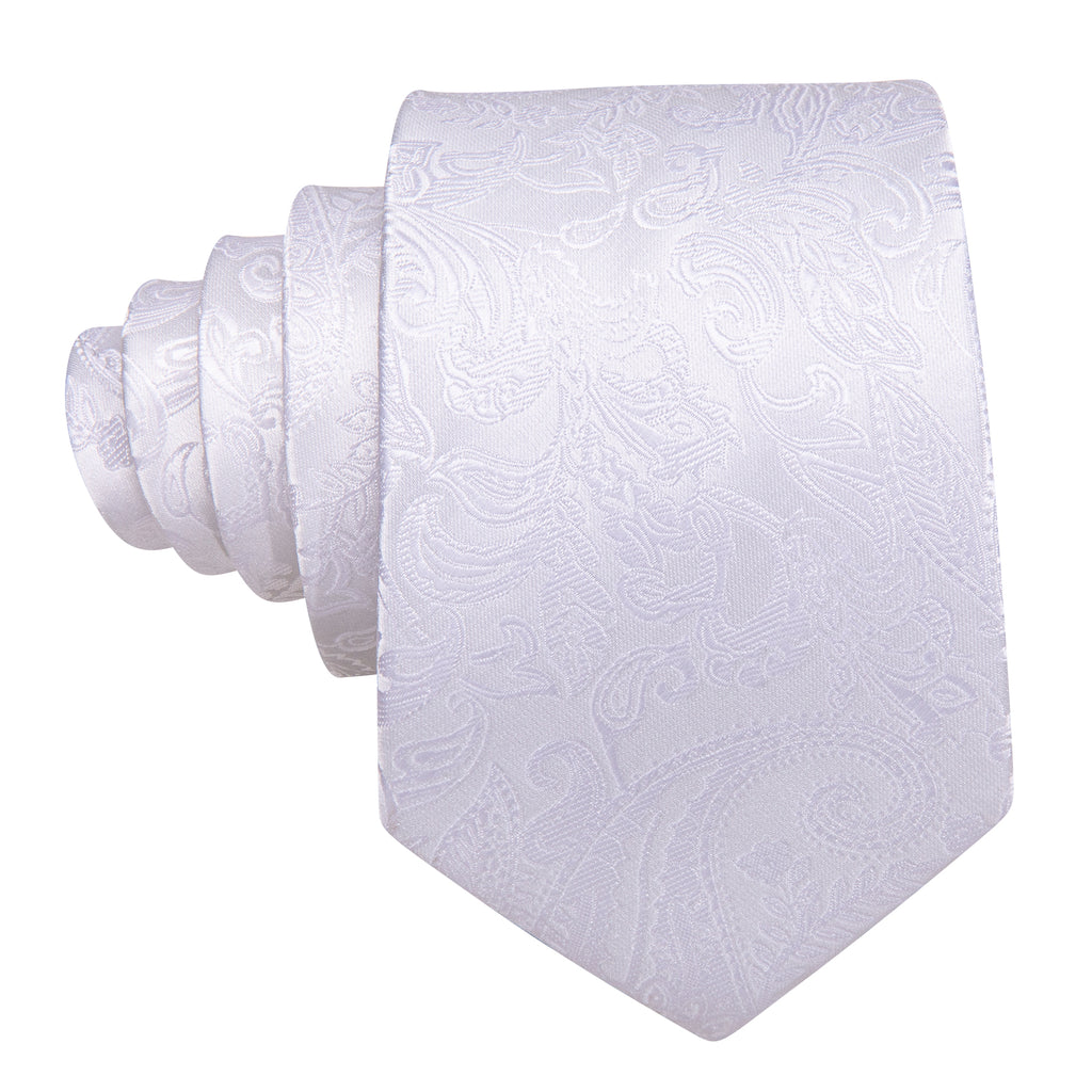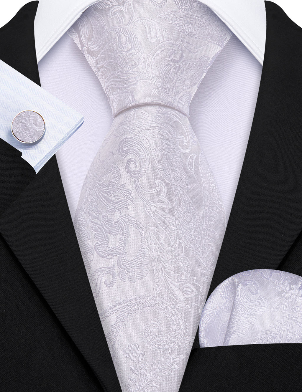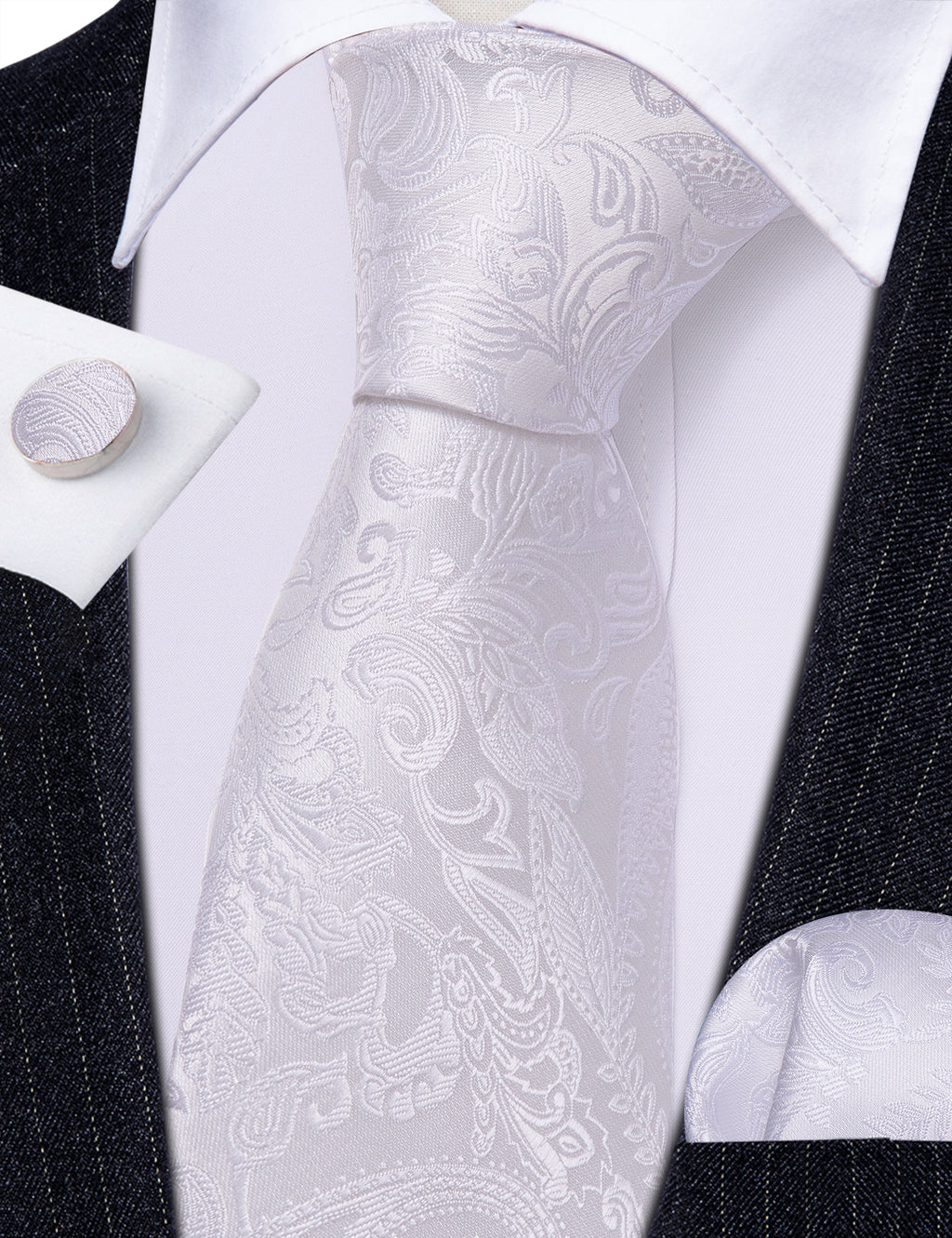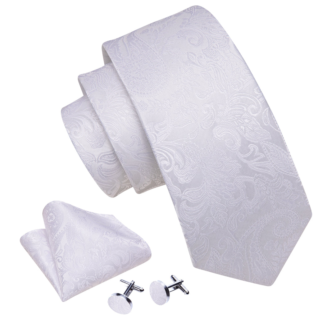 White Paisley Jacquard Silk Tie, Pocket Square and Cufflinks Set